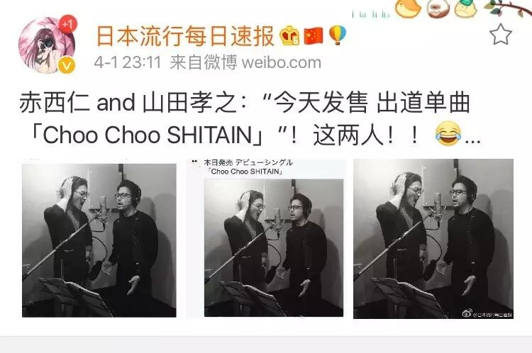 然而因为愚人节,加上以他和城田优为首的那帮子人常年就不太正经,而且这歌名和EXILE的「Choo Choo Train」实在是太像了,正常人都会以为只是开开玩笑好吗。
