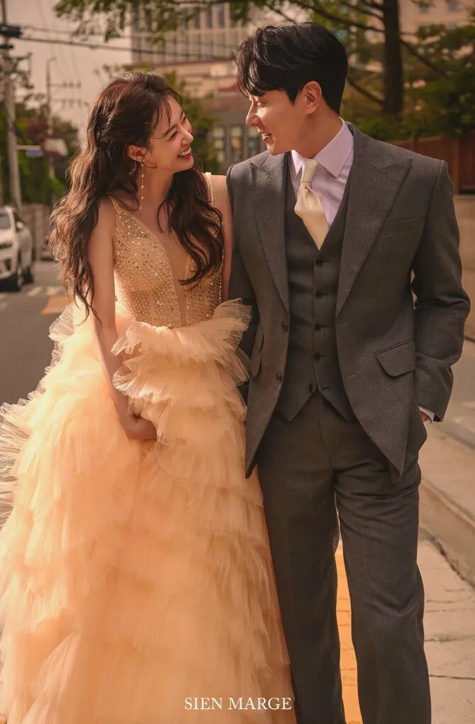 4月又大方地宣布,将在6月12日与李恩珠播音员举行婚礼的消息,而最近两位碧人也晒出了婚纱照,长的好看真的了不起。