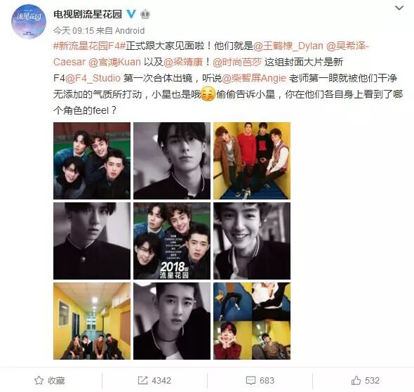 讲真,作为一枚老粉,一开始听到《流星花园》重拍还是蛮怕毁经典的,不过这一次新F4出来后,只论颜值其实还算蛮稳的,平均身高185也足够圈妹,从这点看来,柴智屏的眼光还是可以的就跟她当年选了言承旭、周渝民、朱孝天、吴建豪4人一样。