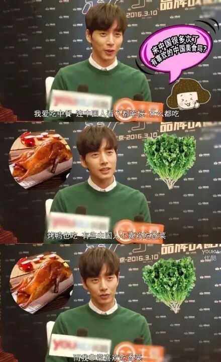 而之所以会送香菜,是因为朴海镇在一次采访中透露,自己十分爱吃中餐,什么都吃,甚至中国人都对他的吃货属性感到吃惊。因为连有些中国人都对香菜忌口,他却非常喜欢吃香菜。