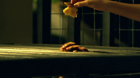 有一场戏中曾勇被关在低矮的笼子里,像狗一样像犯罪分子乞讨食物,曾勇的身心都处在都崩溃的边缘。
