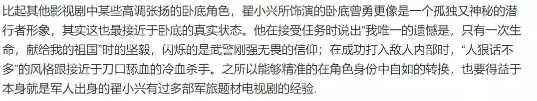 观众看到的,不仅是一个“身份归零”决心守卫家国安全的卧底,更是一个“身份归零”认真演戏的真演员。