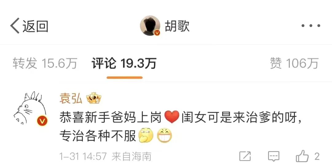 胡歌发文后,武汉籍男星袁弘送上祝福。