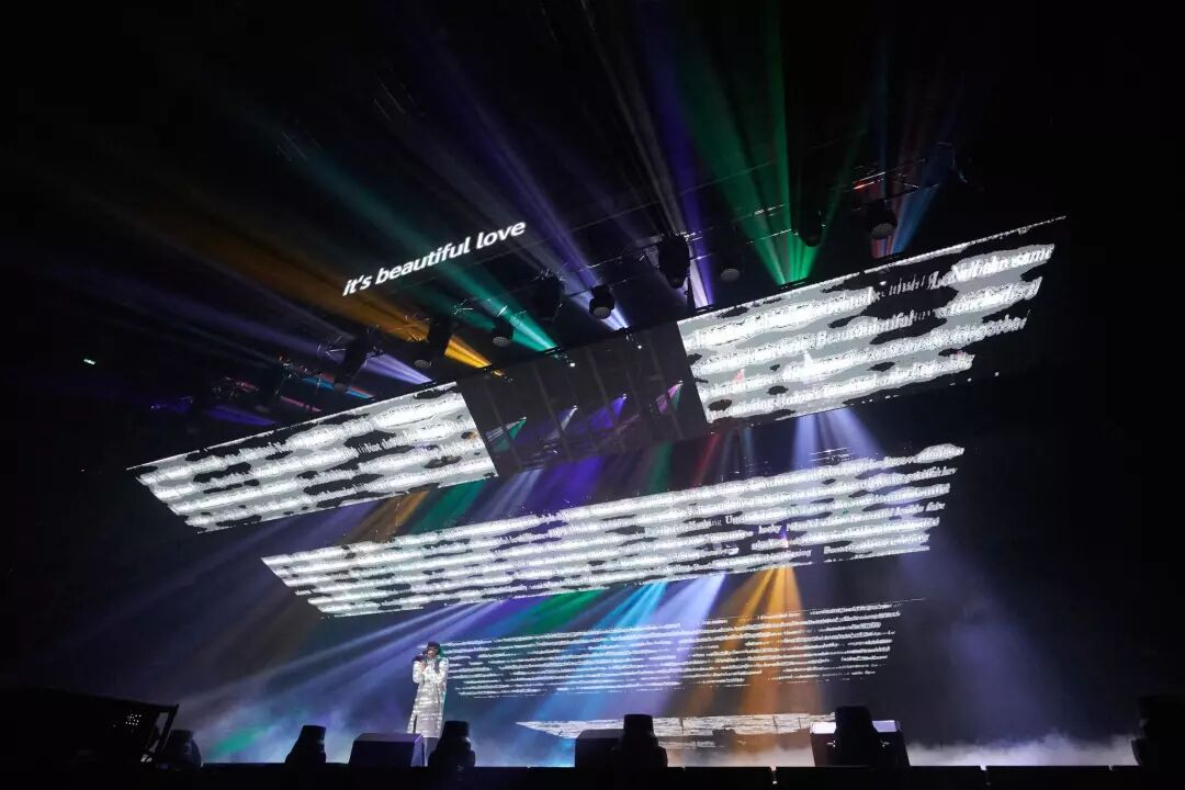 经纪公司华研国际也在《idol》世界巡迴演唱会台北初登场下足重本,舞台全部用透明LED屏幕包覆起来,含天花板和舞台地面共计面积达800平方米总共1800片的透明LED屏幕,经由电脑伺服马达的控制不断变化定位,最多时可以有9片巨大LED牆面同时移动,如变形金刚一样3维立体变形重新组装,加上透明LED的多层次影像交叠效果,奇幻多变的视觉效果令全场观众震撼不已。而舞台上LED屏幕最宽时长达36公尺,不但是小巨蛋前所未有的壮观画面,更是台湾第一位这样打造舞台的歌手!同时又搭配1200支电脑灯和20支全彩雷射,烘托林宥嘉一流水准的演唱,整场演出让观众如痴如醉目眩神迷。