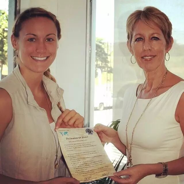 带着国际和平旅游研究所和平大使的身份,每到一个地方,Cassie都会积极与那里的旅行官员交流,通过旅行见闻,倡导世界和平。