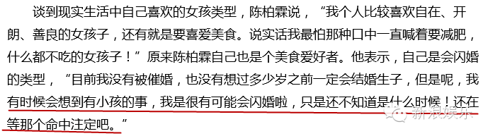 陈柏霖说了很多关于择偶标准啊这些,但是要注意最后一句话哦,「还在等那个命中注定」。