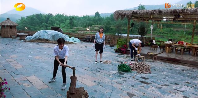 另一旁,和加入王迅的手工制作秋千战队的倪妮干活也是非常利落。
