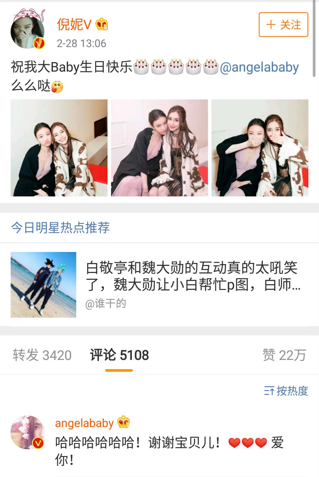 而倪妮和baby两个人在戏外的感情却一直没有淡去,两个人经常在微博互动,更是不会忘记在对方生日时送上祝福!