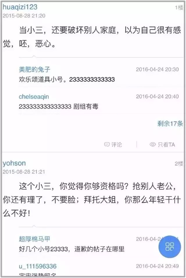 剧中演到有人在某论坛发帖“海归美女甘当无耻小三”,污蔑安迪是小三,结果,论坛上还真的就有这篇帖子。