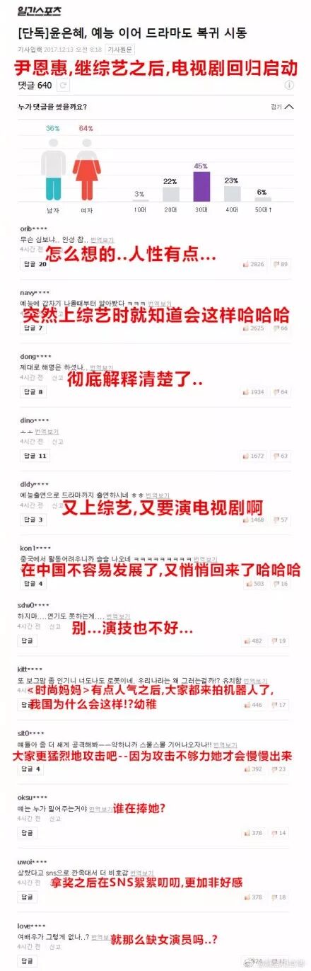 但尹恩惠一面继续履行合约参加《女神新装》,还在节目上痛哭,一面在韩国默不作声,被韩国网友认为是不重视韩国市场