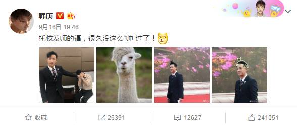 上个月韩庚在微博分享自己的新发型,还把自己的照片和“网红”羊驼放在一起,庚哥真是在自黑的道路上越走越远了,2333...