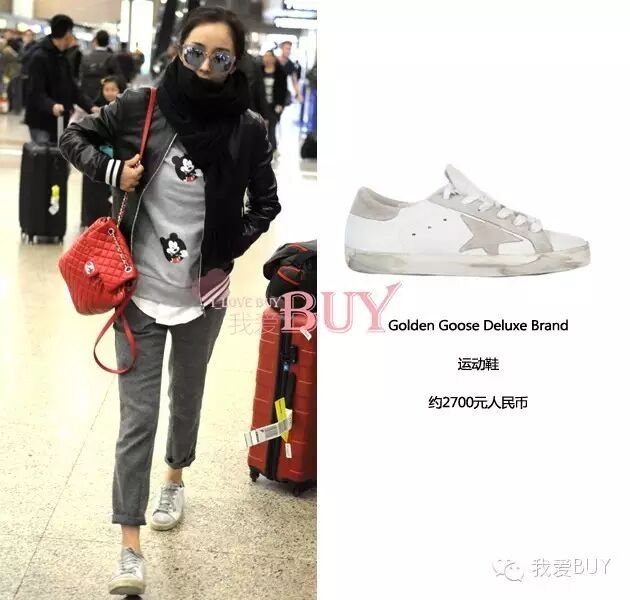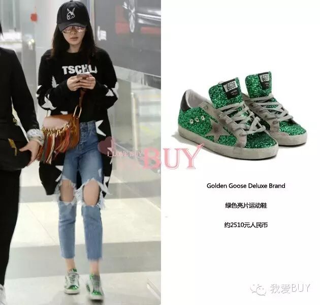 前两天杨幂去机场也穿了Golden Goose,绿色亮片材质,Blingbling的好讨喜,怎么搭都会很时髦啊~