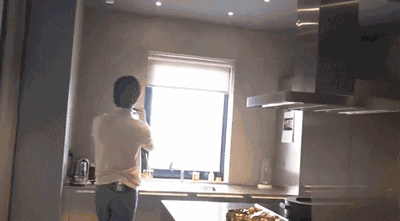 书房里还有个超厉害的天窗,竟然是特地为防狗仔设计的,只需按一下遥控器,窗户就能从磨砂玻璃变成透光的,既能享受阳光又能拥有私密空间~