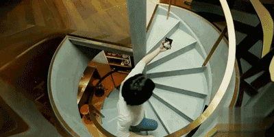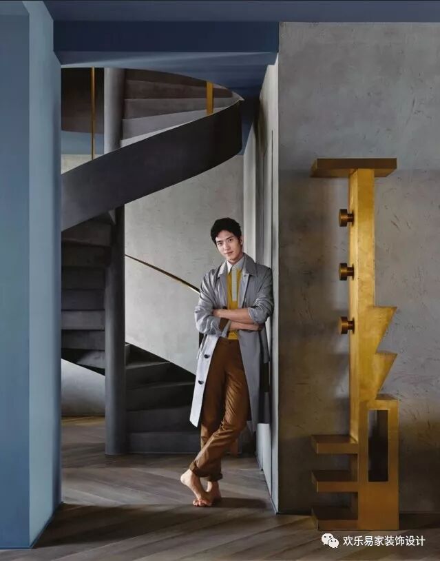 因为没事就爱宅家里,所以井柏然对家的要求比较高,一切都要亲力亲为。这个旋转楼梯就是他亲自设计的。