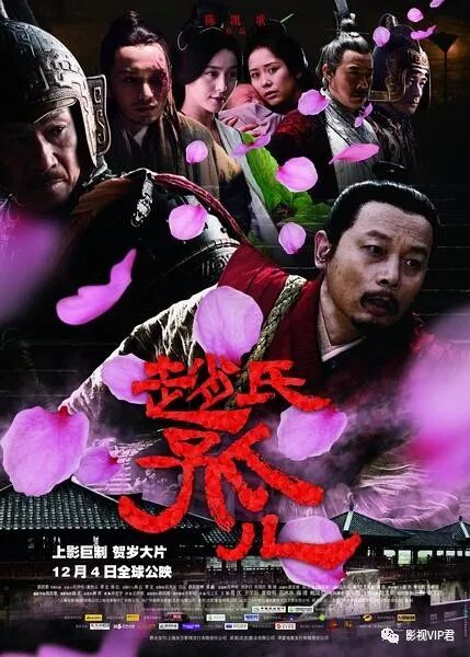 赵氏家族已经显赫了好几代,父亲赵盾是宰相,儿子赵朔是将军,儿子媳妇是王的姐姐庄姬。这样一个家族却被仇人屠岸贾一天之内斩尽杀绝,三百余人无一幸免。在丈夫遇难的时候,庄姬生下了他们唯一的孩子。帮助接生的民间医生程婴带走了庄姬的儿子,庄姬却死了。