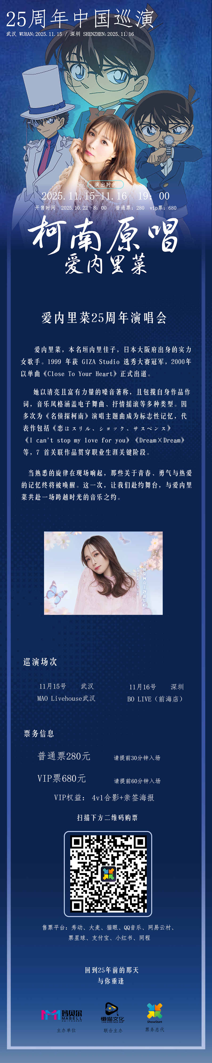 11.15 | 爱内里菜 25周年中国巡演 武汉站 MAOLivehouse武汉 日韩女星 2025-10-26 12:02:57 11 创作不易,用心坚持,欢迎请BaGua喝几杯爱心咖啡!打赏并支持本文 打赏并删除本文 以上内容由主办方提供 创作不易,用心坚持,欢迎请BaGua喝几杯爱心咖啡!打赏并支持本文 打赏并删除本文 感谢您的支持鼓励,我会继续努力的!文章地址:用户邮箱:打赏金额:USDT 请输入数字点击”去打赏“,即可进行打赏支持本文章哦 爱内里菜 发表评论