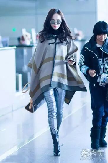 唐嫣斗篷装亮相机场