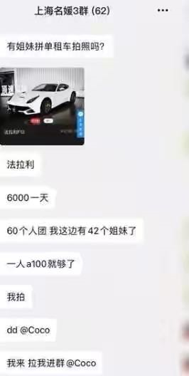丝袜拼单,宝格丽酒店拼单,奢侈品拼单,豪车拼单。而且从某软件中得知,一汽车俱乐部老板说,曾有4男6女10个人,拼一辆保时捷,人均一天才4百块钱。