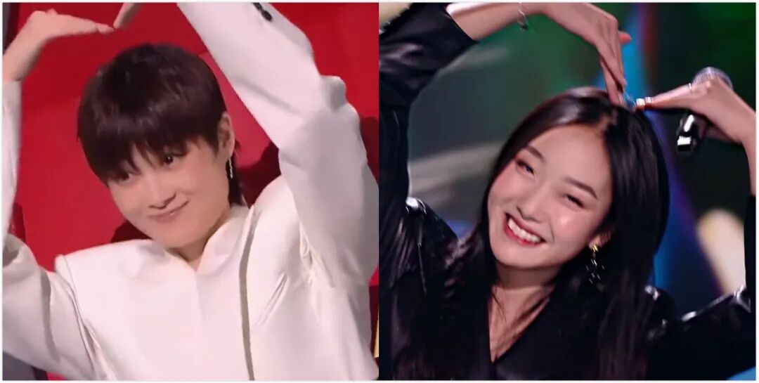 听着春春老师深情款款的演唱,潘虹忍不住湿了眼眶,歌曲唱毕,两人还隔空比心表白。