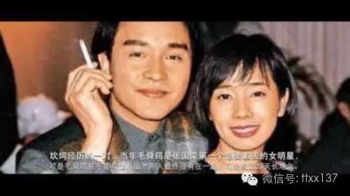 张国荣惟一亲口承认深爱过的女艺人只有毛舜筠。张国荣和毛舜筠早年都在香港“丽的”电视台工作,主持不同的综艺节目,张国荣对毛舜筠可以说是一见钟情,认识不久就闪电求婚,没想到此举却吓坏了对方,两人谈恋爱谈到最后,竟谈成了好朋友、好牌友,后来两人还合作过“家有喜事”等片,默契得不得了。张国荣笑言:“如果当年毛毛愿意嫁给我,我的一生可能就此改变。”