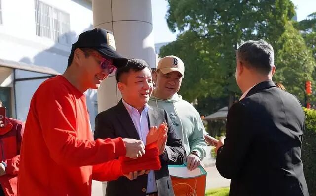 何家劲丝毫没有架子,亲切地揽着肩膀,满足了对方的愿望。