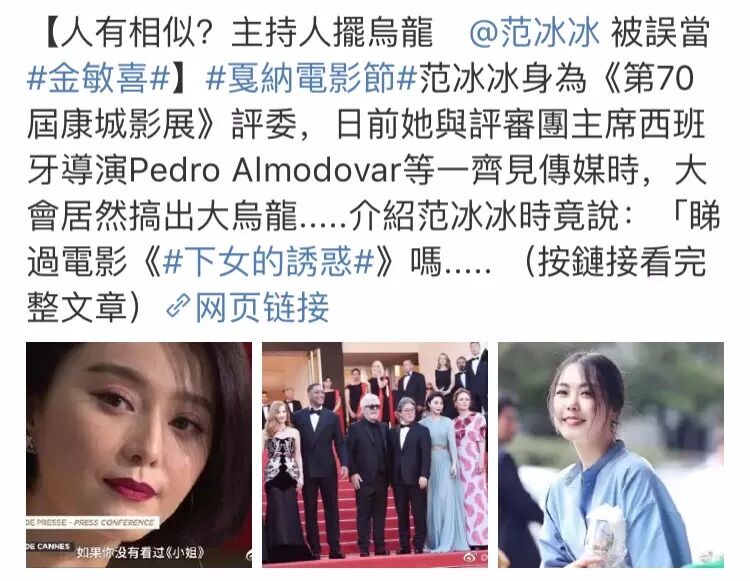范冰冰被当成了韩国演员金敏喜,