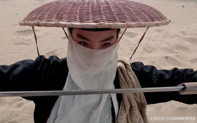 还有《新龙门客栈》里林青霞饰演的邱莫言,头戴斗笠的她,一身正气,是传统的武林侠客,可是就是这样一个重情重义的“女侠客”, 本身高贵的侠义精神最终只能湮没在无情的荒漠中。