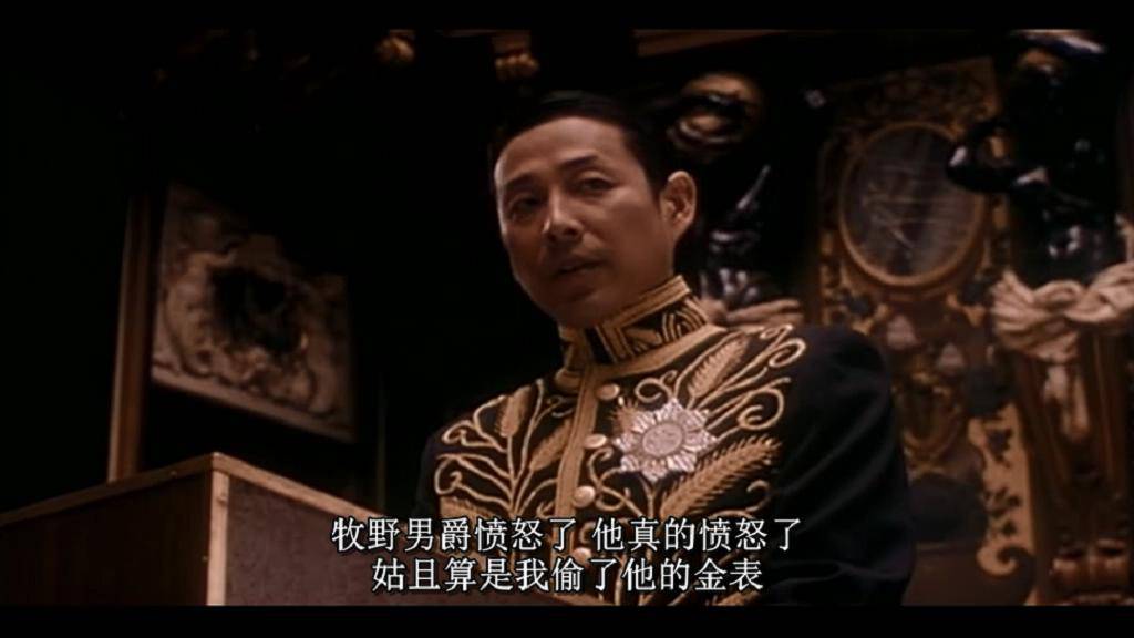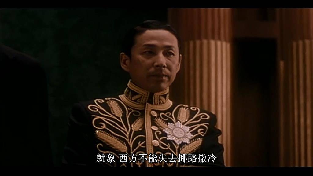 我想请问,日本的这个行为(语气又平缓下来,可谓波澜有致),算不算是——盗——窃(“盗”,“窃”两音一字一顿,精悍沉实,字字秤砣)?是不是无耻啊(语声延续低缓)?是不是极端的无耻?!!!(最后这句之所以打三个惊叹号,非如此不足以状陈道明此细节的台词处理,再一次抑而后扬,又从风和日丽陡然切换至山崩地陷,陈道明怒喝一声“极端的无耻!”时配以右臂握拳屈肘竖起来狠狠一收,便如是一个悍武的军人,此刻这个文士文气顿敛武气发扬悍烈,其势如惊雷破柱,观影者如我只觉得一团火光在眼前轰然爆裂,脑子里一片空白,来如雷霆收震怒罢如江海凝清光……)”——陈道明,就凭这一个瞬间,就施施然而收他凭此角获颁的华表金鸡双料影帝。