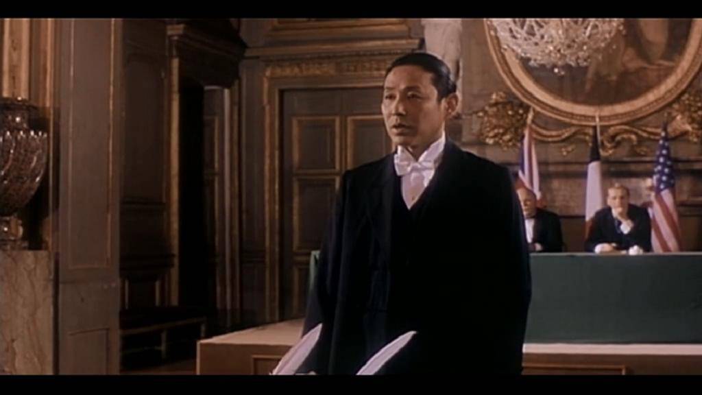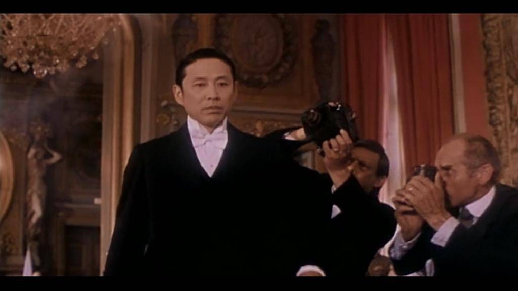 ——必须指出,片中台词戏之成功,黄健中导演功不可没。首先,他力主陈道明用中文发言:“我让他(陈道明)用中文发言,这是一大段台词,如果他用英语发言再打上字幕,就失去了对中国观众的直接感染力和冲击力。”(p273)