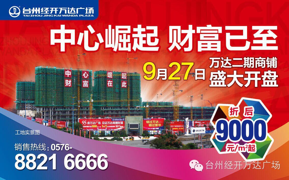 折后9000元/㎡起,万达二期商铺9月27日盛大开盘,火热抢筹中,先抢先得!