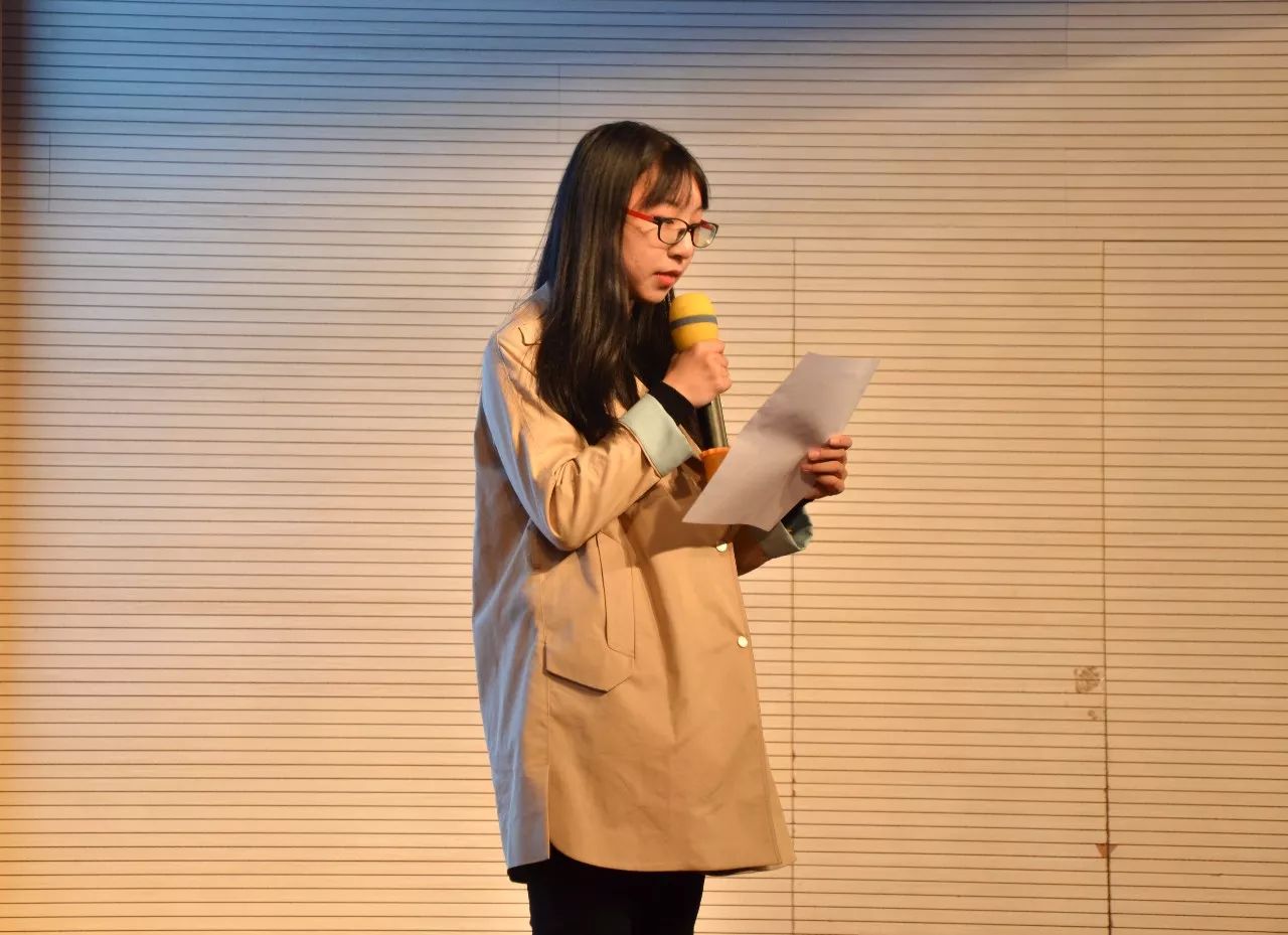 2017届大艺团团长柴华上台宣布动员大会开始并介绍大学生艺术团组成、职能及荣誉。