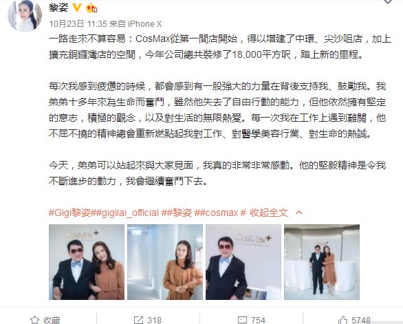淡出娱乐圈多年的黎姿,前不久在微博公布了一条好消息。11年前,因车祸而失去自主能力的弟弟,终于可以站起来与大家见面了。