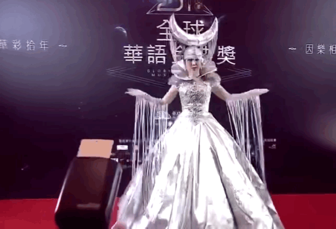 图雅自己介绍,金曲奖礼服是专门邀请国际知名服装师打造的,感觉誓要顶起华语乐坛的“一轮明月”。