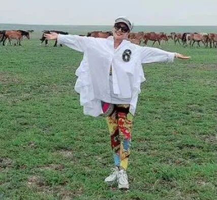 图雅姐穿着五彩斑斓的Versace,站在草原眺望北京。