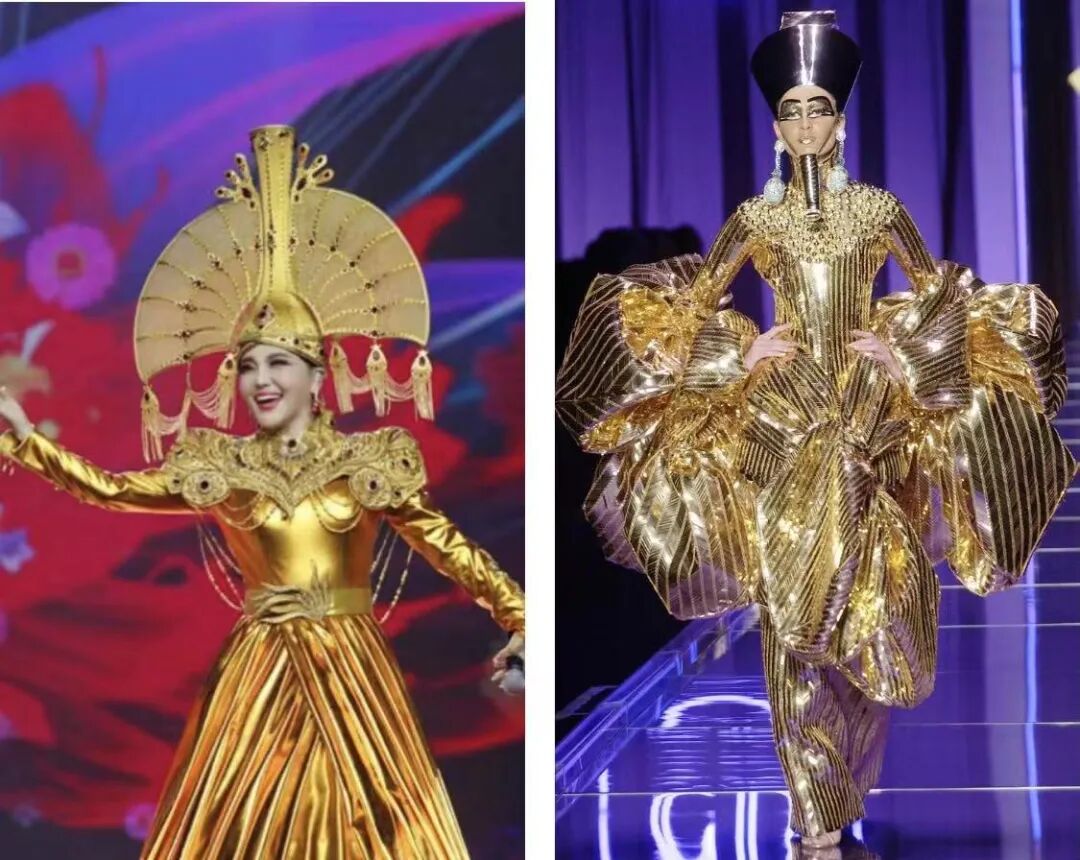 除了金曲奖红毯的“银角大王”造型,图雅还有一个金角版本,富丽堂皇之极,气势绝不输给John Galliano的Dior高定。