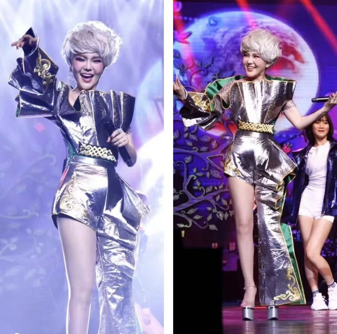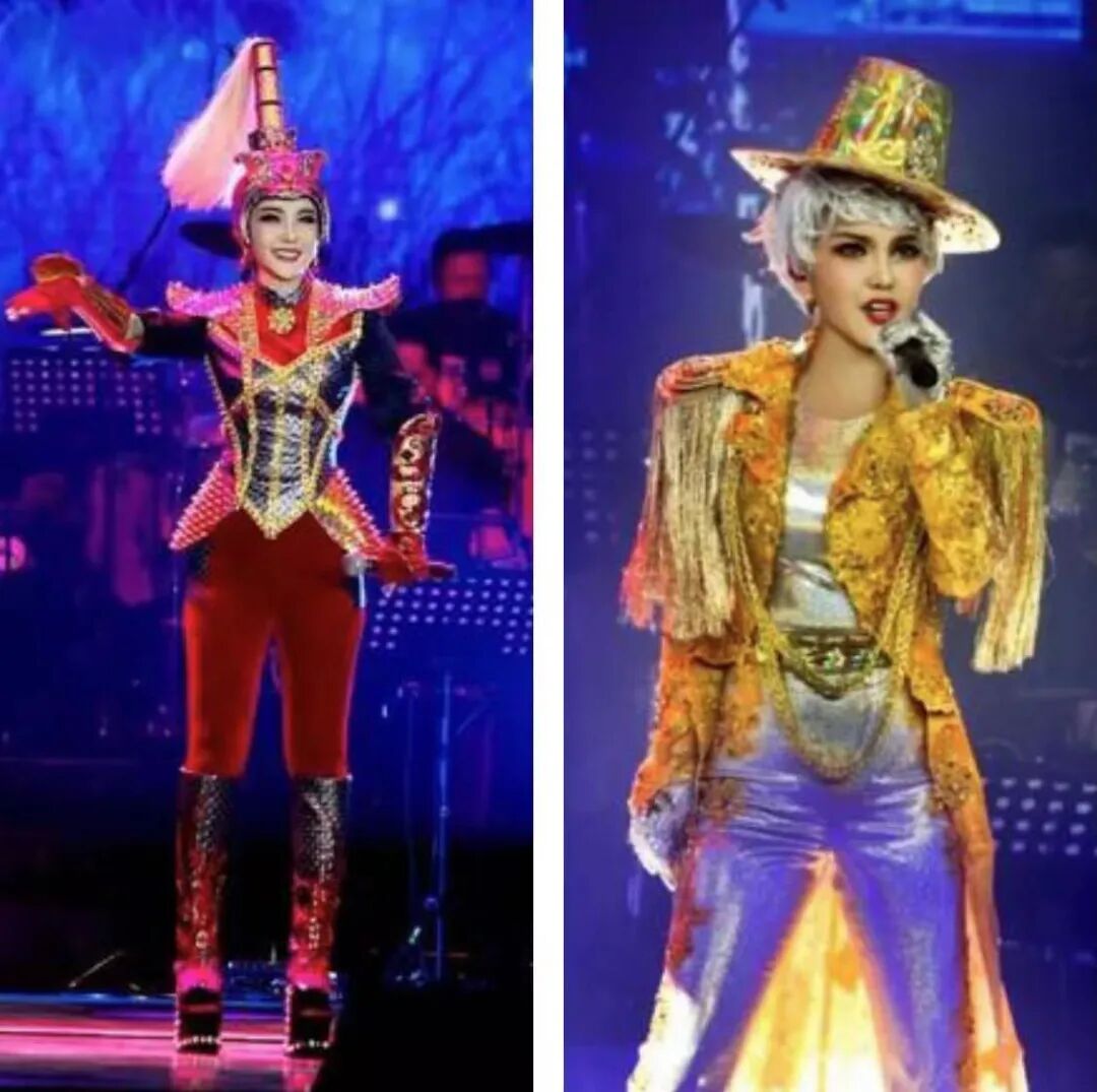 这些华服,跳脱了寻常民族歌手的桎梏,时而华丽得让高定匠人都望洋兴叹,时而反叛得像一位崇尚解构主义的未来女战警。