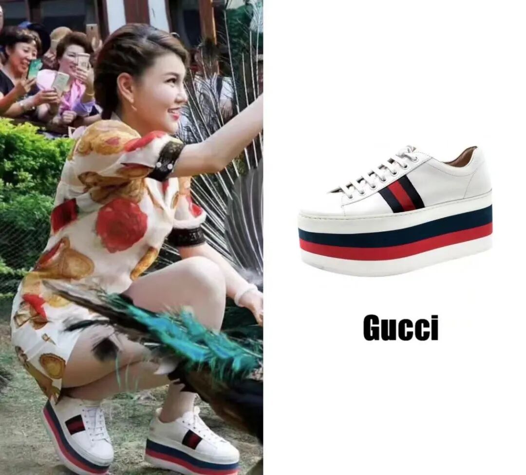 图雅姐还尤其喜欢Gucci的厚底小白鞋,用来搭裙子、搭羽绒服,都收获了稳稳的幸福。
