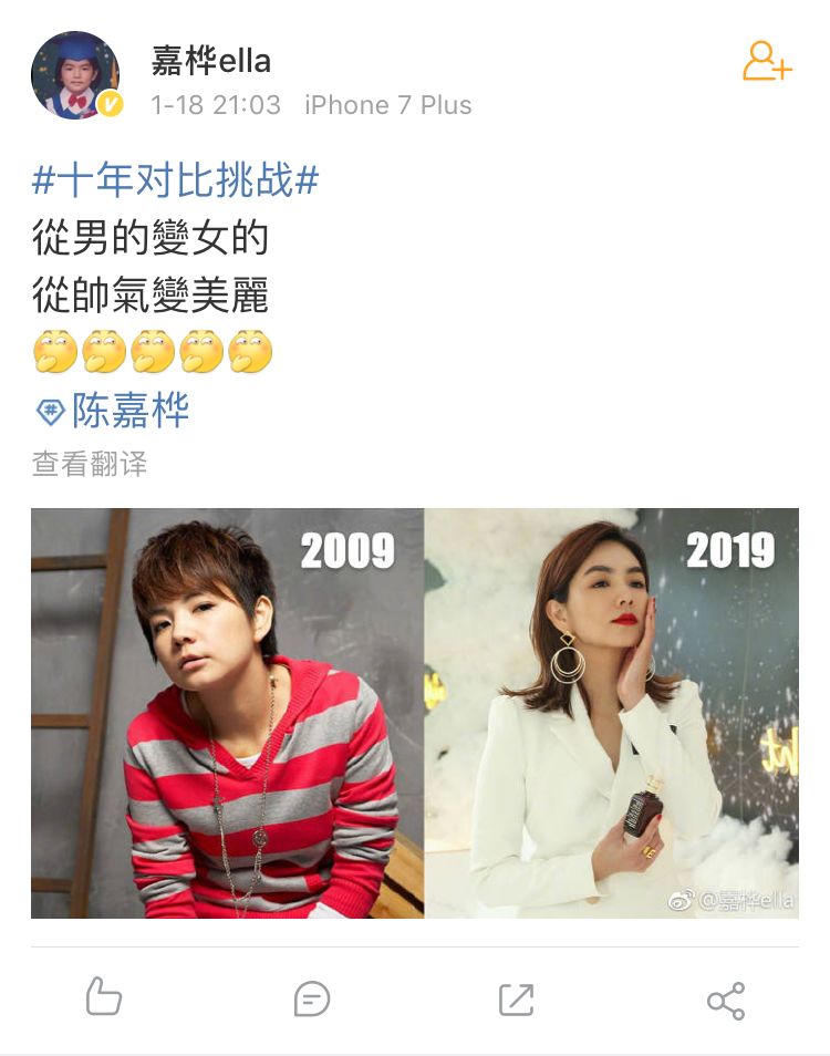 #10年对比挑战#指的就是晒出2009-2019年的照片进行对比。国内外网友,不管是普通大众还是星光熠熠的明星,都纷纷参与了这项挑战。