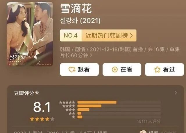 事实上,《雪滴花》虽然在韩国不受待见,在海外却很讨人喜欢,热度很高。