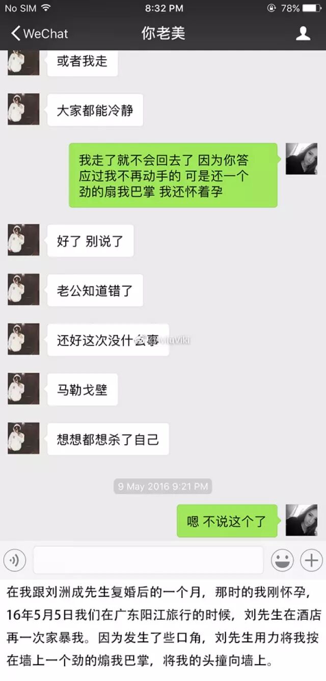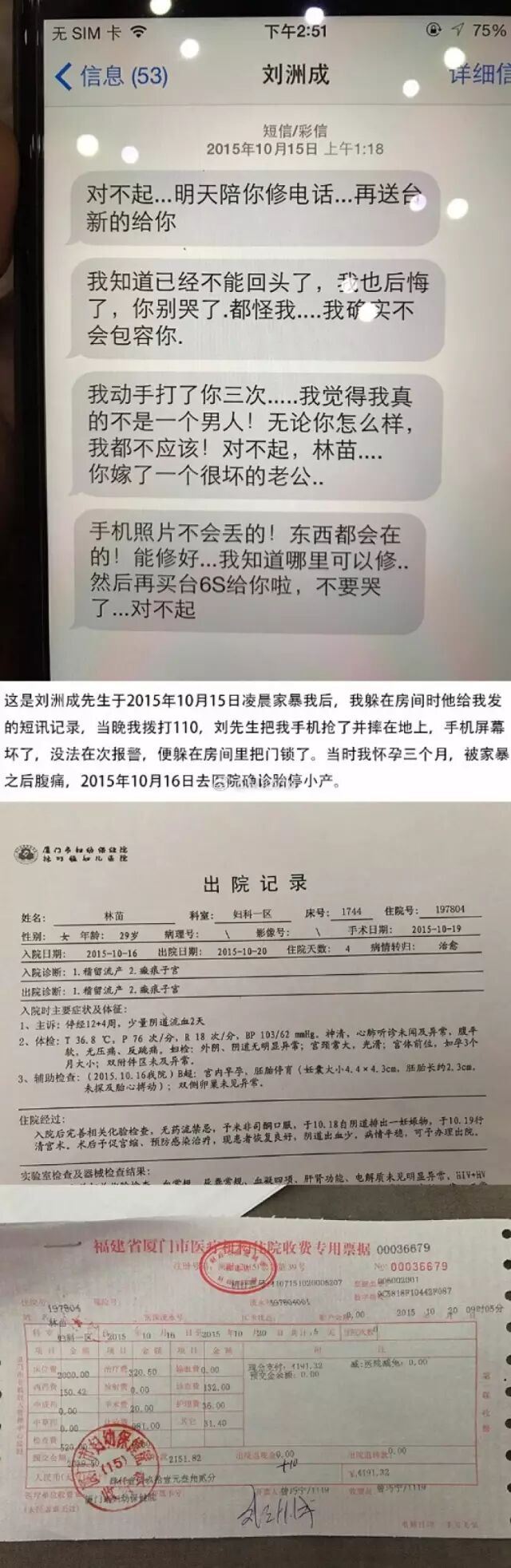 为了证明自己的说法,林苗还公布了两人的聊天记录以及医院证明。既2015年10月,刘洲成对怀孕3个月的她实施家暴,导致其腹痛流产。