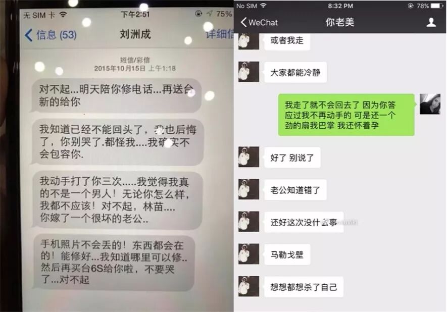 2016年9月,刘洲成和林苗说他想住别墅,开超跑,让女方向其父母要钱;仅过一个月,刘洲成再次对怀孕8个月的林苗家暴,并且对林苗的大女儿大声恐吓。
