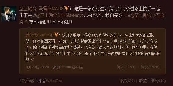 李茂退队后,在新专辑,发布会前,刘洲成突然爆怒,引发至上励合解散传闻。