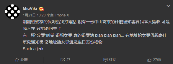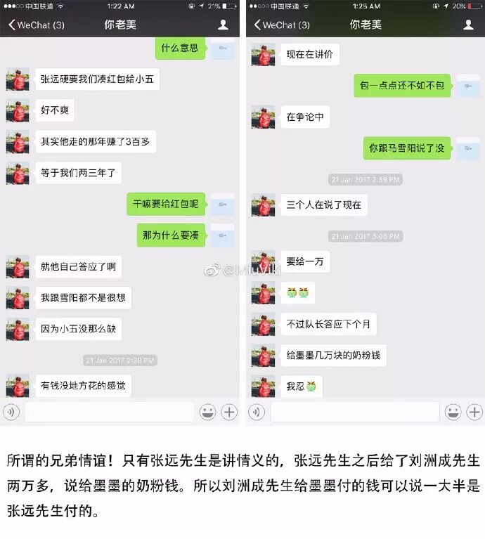 2017年4月,他们俩的女儿墨墨生病在医院做手术,但刘洲成却在柬埔寨旅游,被粉丝发现后空降粉丝群和粉丝解释的截图。