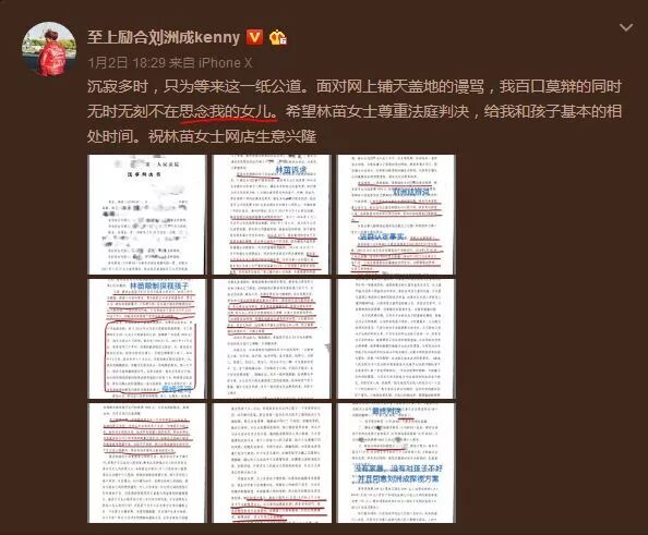 刘洲成被网友嘲笑后,又晒出证据,指责林苗身份作假、其父亲身份是欠债大户、林苗大女儿是和前男友所生、她还假怀孕骗婚。