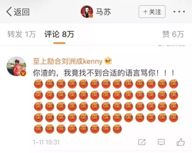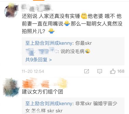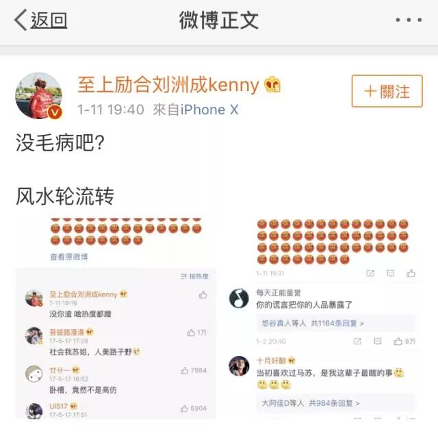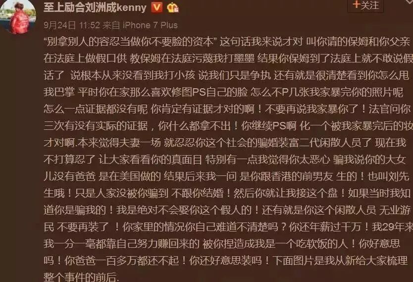 刘洲成被前妻撕时,马苏还留言斥刘洲成渣,当时刘洲成没回应。直到半年后,刘洲成才回击说蹭热度。