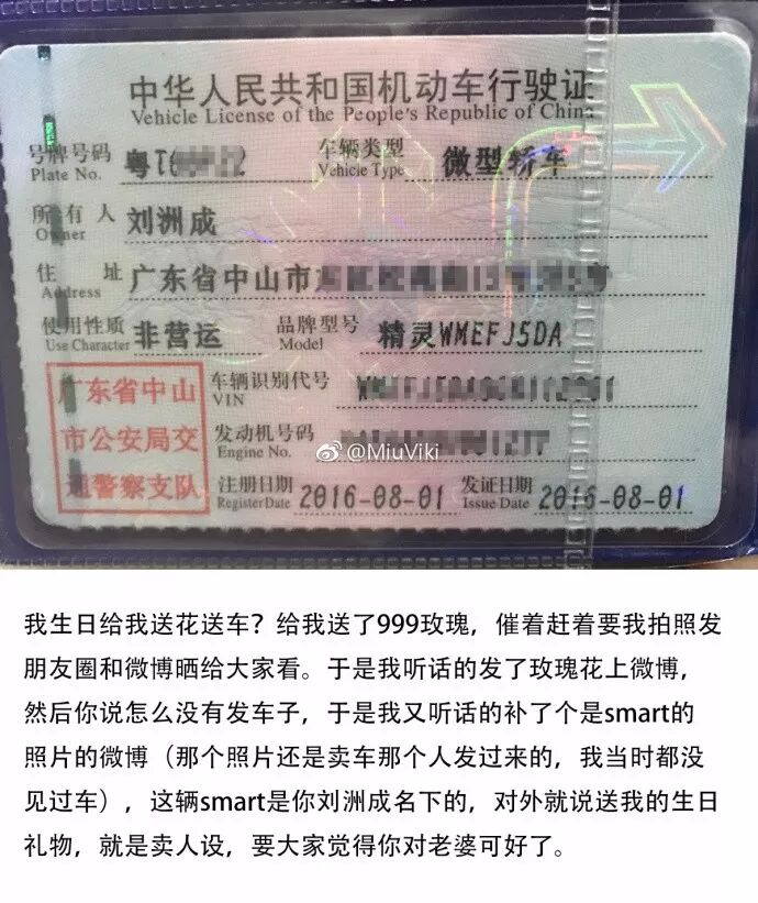 并晒出刘洲成手上的名表是林苗买的,而刘洲成所谓买给林苗的车,其实也是他买给自己的。