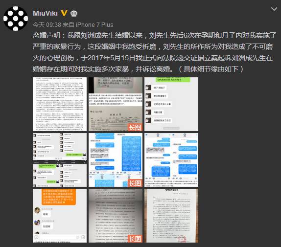 去年5月,刘洲成的妻子林苗(@miuviki)突然在微博发表离婚声明,而两人主要离婚的原因便是家暴。