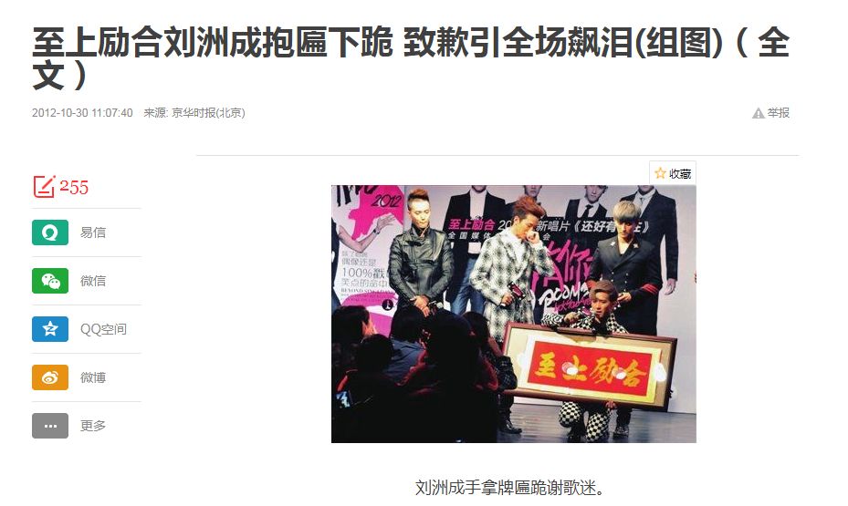 后来在新专辑发布会上,刘洲成拿着牌匾下跪道歉,抢了当天组合的头条。