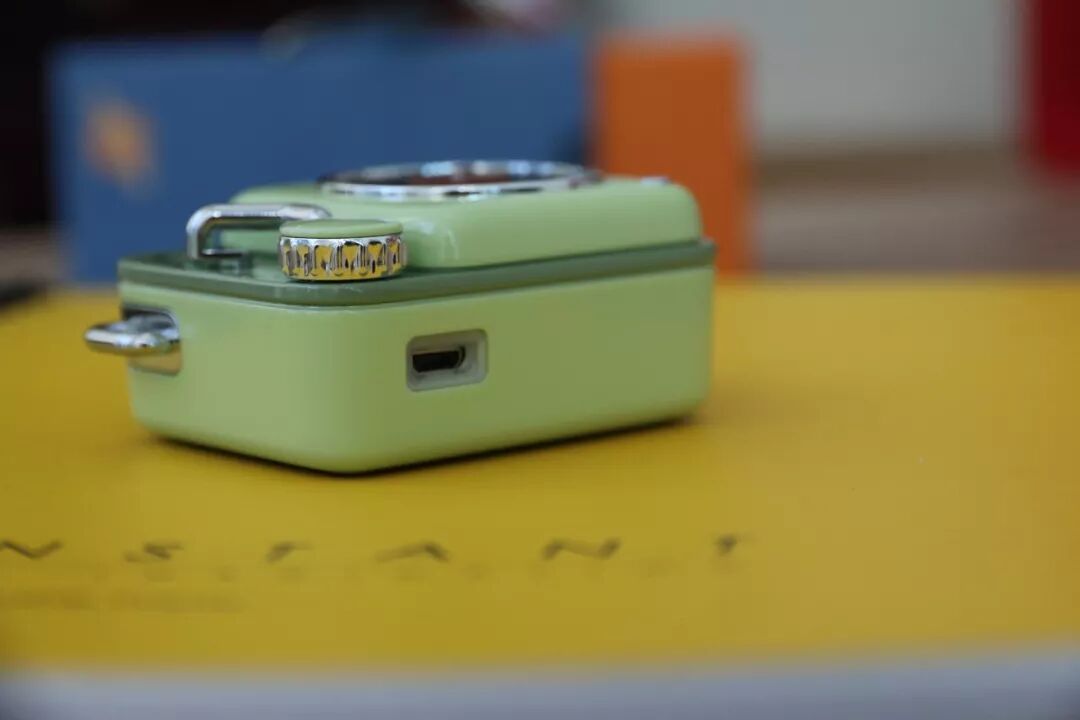 在唱机侧面的USB充电的接口,在不会破坏整体美感的同时,还设计有一个led提示灯,让在充电时会亮红灯进行提醒,让充电状态一目了然。。。