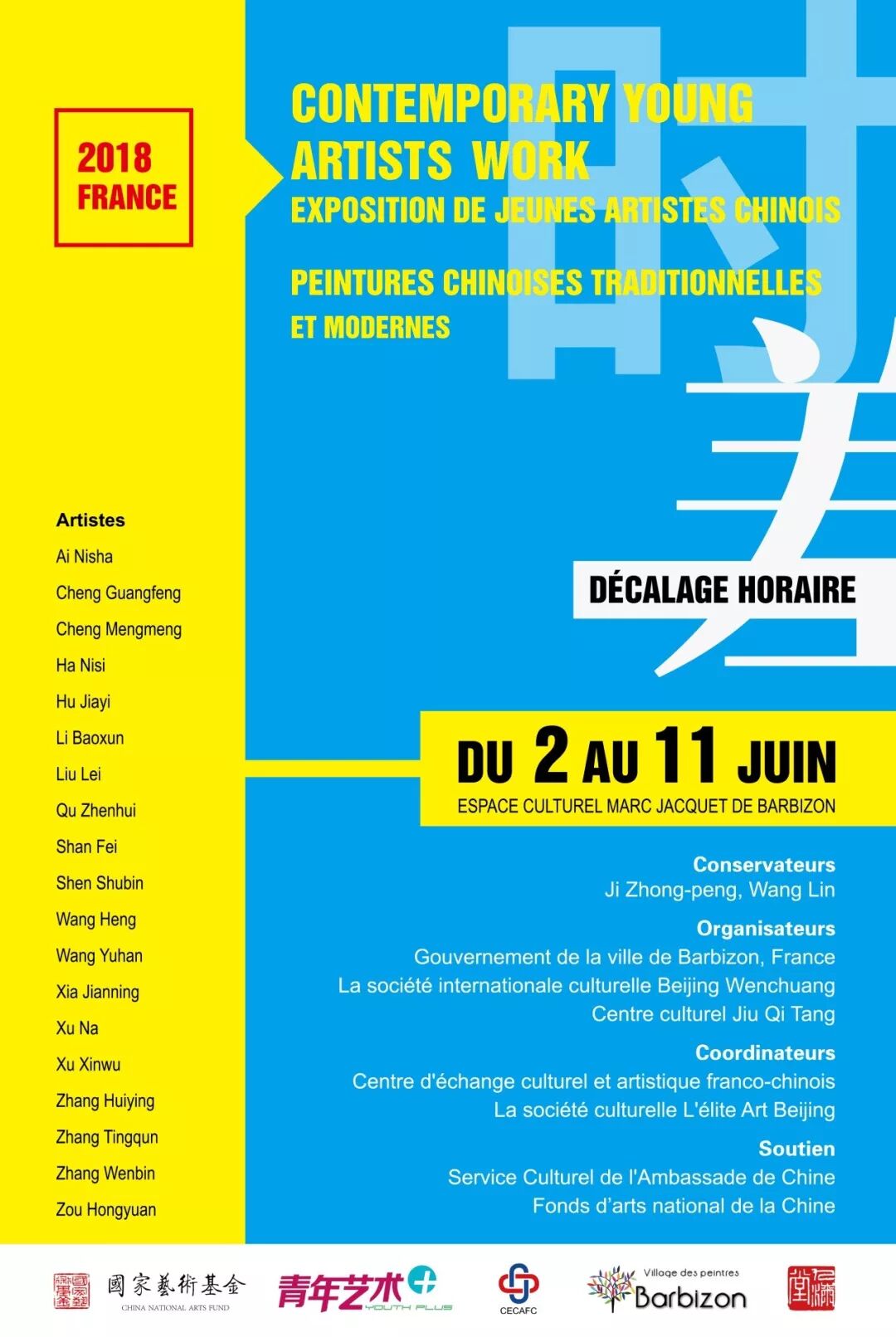 2018年6月3日, “时差·‘青年艺术+’当代青年艺术家作品巡展——法国站”展览在法国巴比松市政府马科·杰克厅盛大开幕。本次展览由法国巴比松市政府、北京文创国际文化交流有限公司、九漆堂文化中心、北京青艺英才文化交流有限公司以及法中文化艺术交流中心共同主办,得到中国驻法国大使馆文化处、国家艺术基金的支持。法国巴比松市长杜斯·菲利普,法国国会议员让·克劳德,法国巴比松副市长玛丽亚娜女士,法国枫丹白露阿旺市副市长高蒙赫,法国枫丹白露阿旺市副市长巴达利女士,CAP文化协会主席韦伯,法中文化艺术交流中心主席佟爱明女士,米勒博物馆馆长娅玛女士,巴比松艺术家代表巴斯戛拉先生,中国驻法国大使馆文化处一等秘书梁成喜,以及本次展览策展人姬忠鹏、王麟,参展艺术家艾妮莎女士、哈妮斯女士、程广峰、申树斌、夏俭宁及当地著名媒体记者和社会各界人士等百余人出席了本次展览开幕式。
